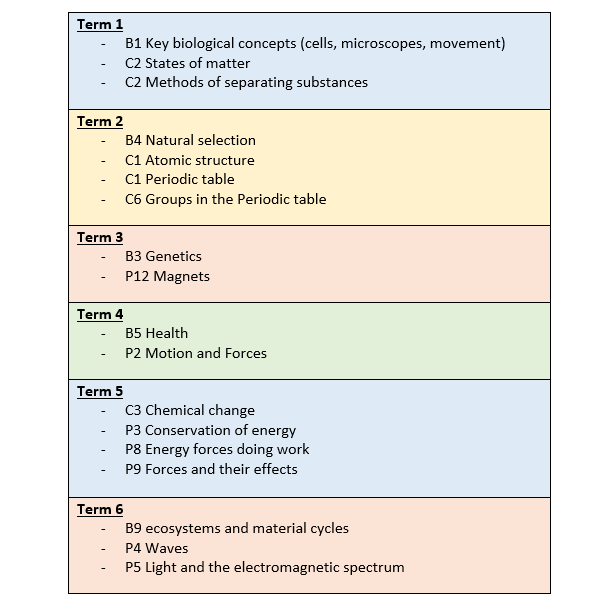 - These topics are revisited and built upon to deepen understanding and prepare pupils for the demands of GCSE Science.