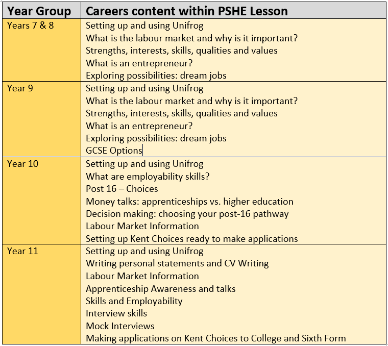 Personalised careers guidance is primarily focused at key transition points, particularly Year 11 pupils at the Leybourne and Canterbury schools and Year 11 and Post-16 pupils at the Staplehurst school. However, you may receive careers guidance in a lower year group where: